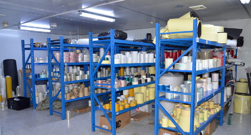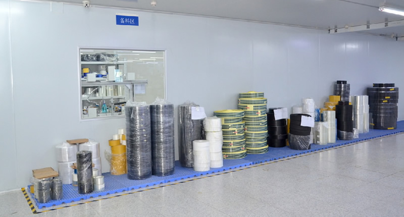 根据原料特性(如卷材、片材、胶粘剂)划分存储区,并设置待检区、不合格品隔离区,确保流程清晰。